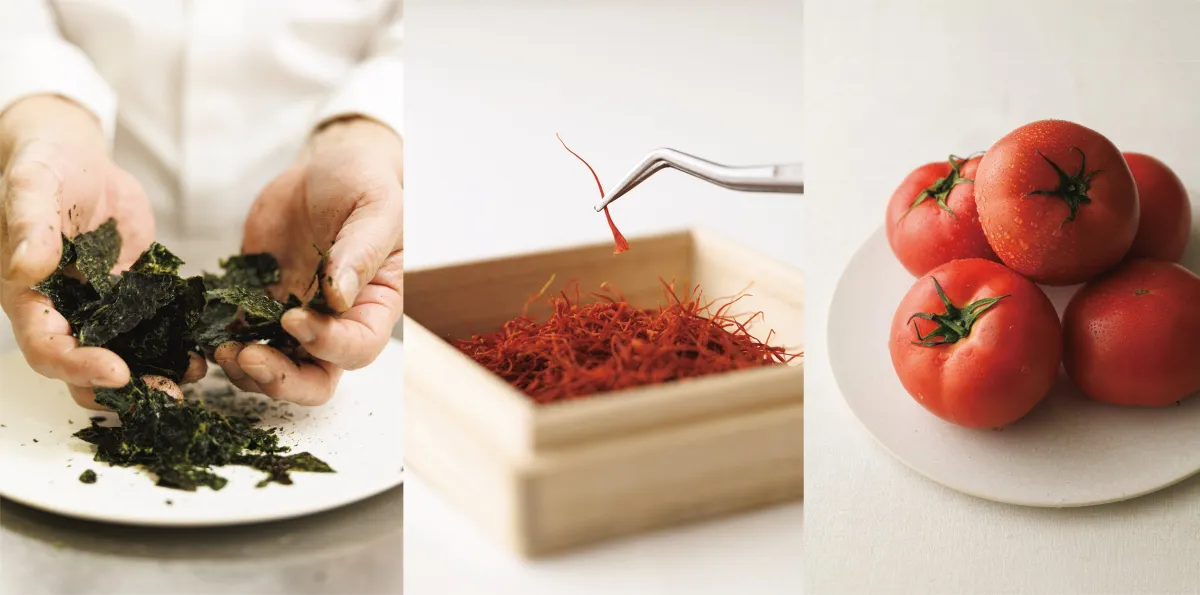 こちらのメインダイニングでは、佐賀の名産である有明海苔とAkaitoサフランのファゴッティーニが特別メニューとして用意されています。300年の歴史を持つサフランを利用した料理は、その香りと色合いで深い味わいを生み出します。