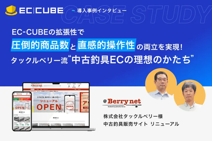 今回のリニューアルで採用されたのは、EC-CUBEというオープンソースのECプラットフォームです。タックルベリーは、常時13万点を超える在庫を持つため、過去の旧システムではスムーズな商品検索が難しい状況がありました。そこで、EC-CUBEの高いカスタマイズ性を活かし、リユース特有の複雑な業務フローに適応したシステムを導入しました。