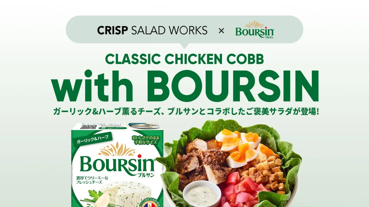 2025年9月17日(水)、東京を拠点に展開するカスタムサラダ専門店「クリスプサラダワークス」と、フランス発のフレッシュチーズ「ブルサン」が手を結び、特別なサラダメニューを発表します。このコラボレーションにより、人気の「クラシック・チキンコブ」に「ブルサン ガーリック&ハーブ」をトッピングした魅力的な一皿が実現しました。