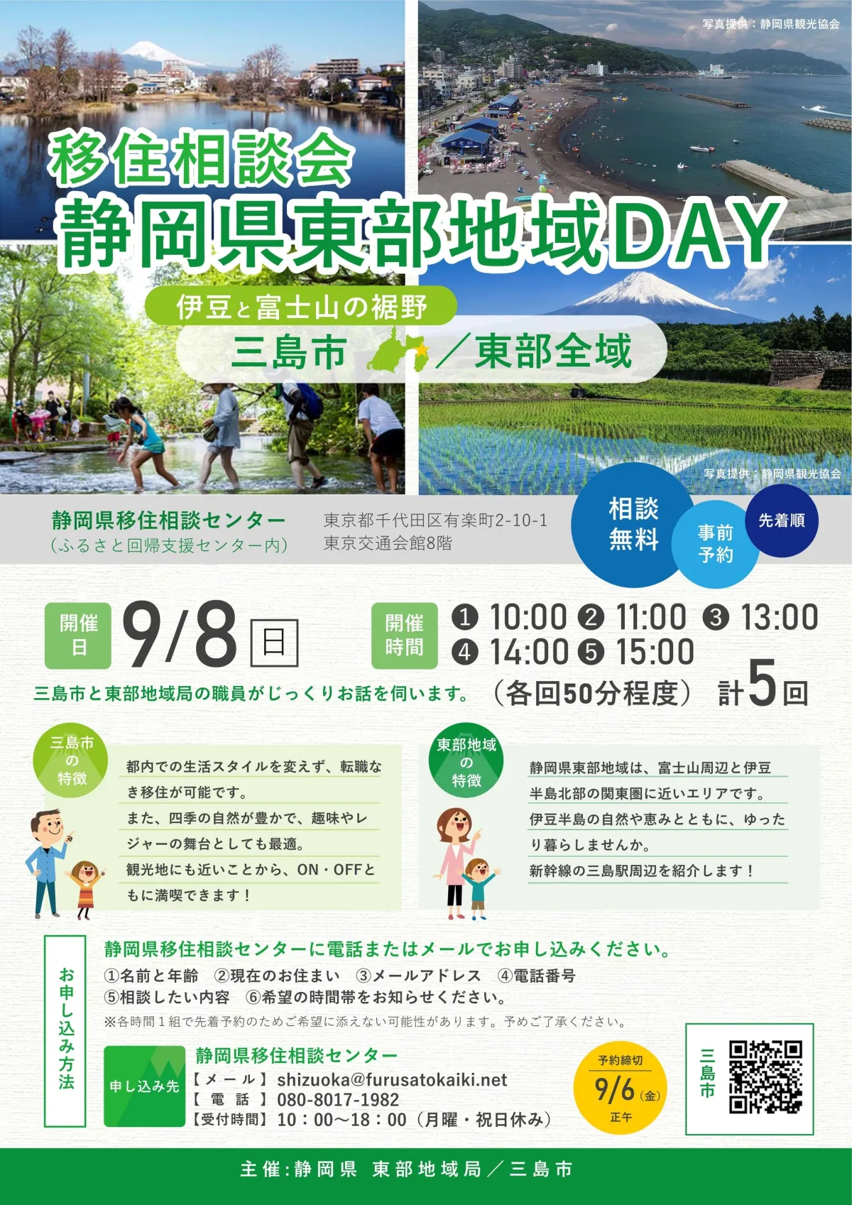 2024年9月、東京・有楽町にて「静岡県東部地域DAY」の移住相談会が企画されています。このイベントでは、静岡県の中でも自然豊かな東部地域への移住を希望する方々と、三島市や伊東市の職員が直接相談を通じて意見交換を行います。特に、移住に興味がある方にとって、この機会は非常に有意義です。