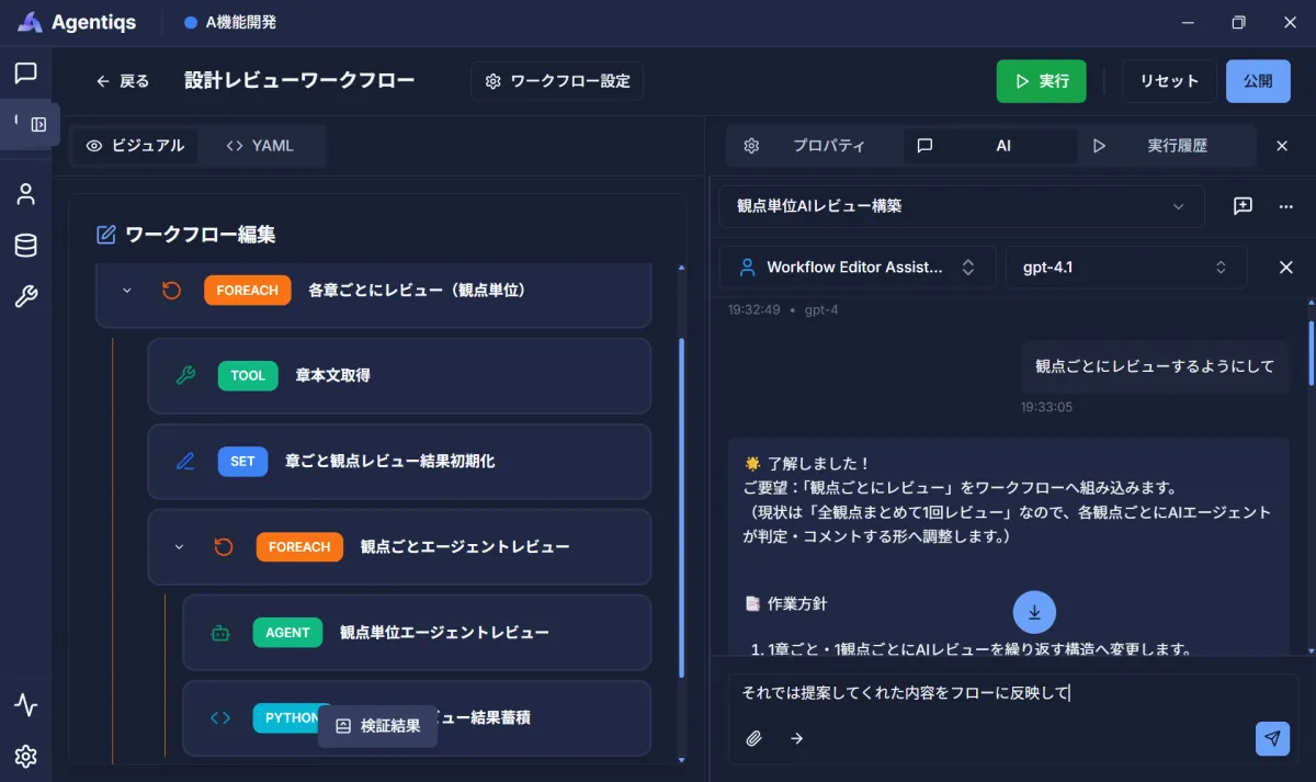 また、DC Agentiqsは開発タスクを適切な単位に分割することで、抜け漏れや結果のばらつきを抑えることができます。ワークフロー機能により、複数の利用者やタイミングに関わらず一定の品質を保った結果を引き出すことが可能です。これにより、大規模なプロジェクトでも高い品質を維持することができます。