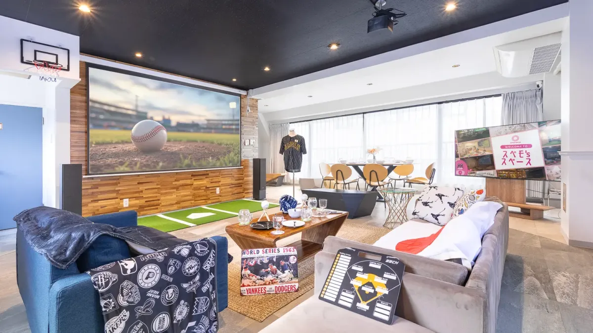 120インチの大型スクリーンとテレビが設置されたユニークな空間で、迫力ある試合を楽しむことができます。複数の試合の同時視聴も可能なので、見逃す心配もありません。