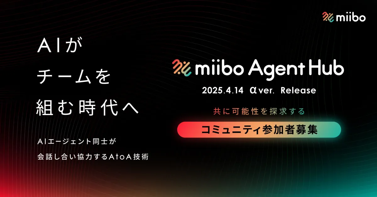 2023年に設立された株式会社miibo(東京都港区)は、「AI Joyboost! AIで、人を社会を幸せにする」という理念を掲げ、マルチエージェント技術を利用した「miibo Agent Hub」のα版を発表しました。このプラットフォームは、複数のAIエージェントが自律的に議論し合うことができる環境を提供し、AI同士が直接対話する新たな「A2A(Agent to Agent)」の時代を切り開くものです。