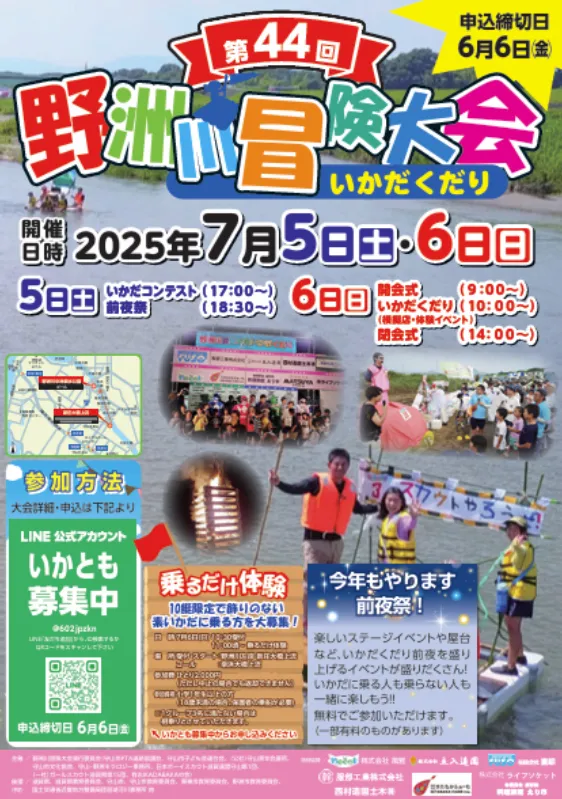 滋賀県守山市の夏の恒例イベント「野洲川冒険大会いかだくだり」が、今年も第44回目を迎えます。公益社団法人守山青年会議所が野洲川冒険大会実行委員会と共に主催し、守山市の社会教育事業の一環としても位置づけられているこの大会は、家族や仲間たちが清流・野洲川を舞台に感動的な冒険を繰り広げる貴重な機会を提供します。