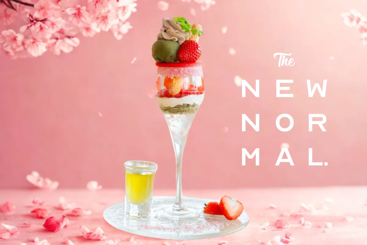 恵比寿にあるパフェ専門店【 THE NEW NORMAL 】から、春限定の特別なデザートが登場しました。その名も『花びら舞うサクラパフェ ~ひとくち冷緑茶を添えて~』。2025年4月末までの期間限定で提供されており、価格は2,680円(税込)です。