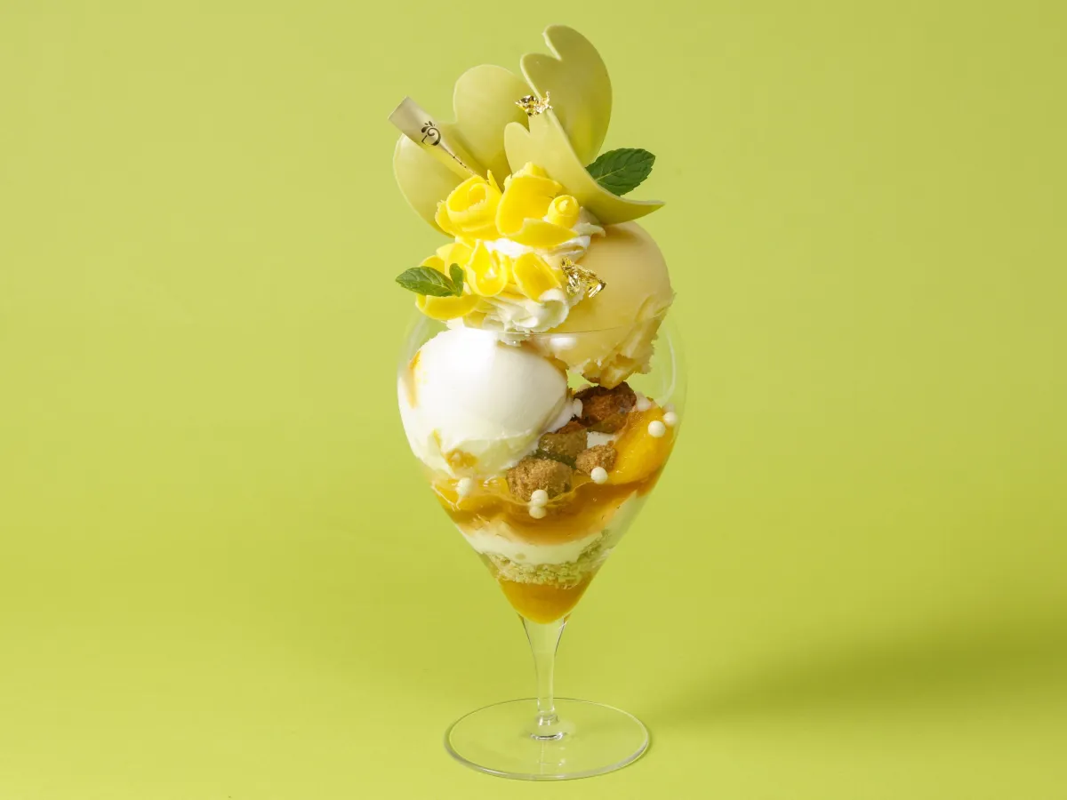 このパフェは、シャキッとした日向夏、グレープフルーツ、マンダリンオレンジなど、さまざまな柑橘類を使用し、春の陽気にぴったりの爽やかさを楽しめます。柑橘の酸味に加えて、ホワイトチョコレートクリームのまろやかな甘さが相まって、口の中で広がる春の風を感じさせてくれます。
