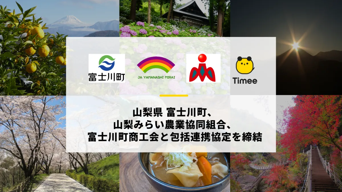 株式会社タイミーは、山梨県富士川町、山梨みらい農業協同組合、富士川町商工会との間で包括連携協定を結びました。この連携は、主に町内の観光資源を活かした地域振興や、子育て世帯の就労支援を目的としています。