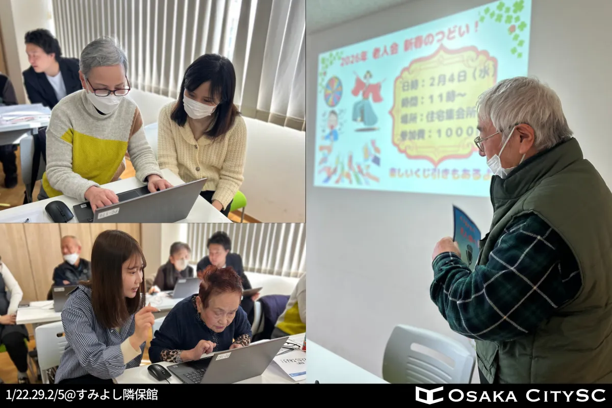 2026年1月22日、29日、および2月5日の3日間、Osaka City SCが大阪市の社会福祉協議会との協力により、高齢者を対象にした「デザイン講座」を開催しました。本イベントは、地域の高齢者が積極的に参加できる活動を通じて、彼らのスキル向上やコミュニティのつながりを強めることを目的としています。