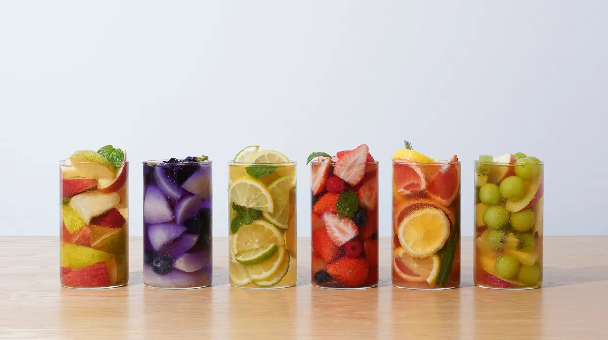 全6種類のフレーバーがあり、どれもノンカフェイン。飲みやすく、さっぱりとした味わいが特徴です。フルーツを一緒に入れることで、より一層楽しい味わいと華やかな見た目を楽しむことができます。