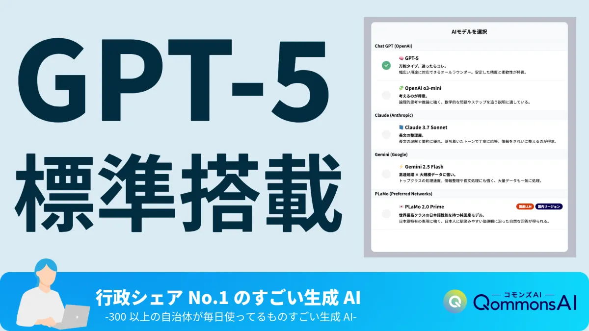 最近、Polimill株式会社が手がける行政シェアNo.1の生成AIサービス『QommonsAI』に、次世代のAIモデル「GPT-5」が標準装備されることが発表されました。これにより、全国300以上の自治体でこの革新的なサービスが利用されることになります。