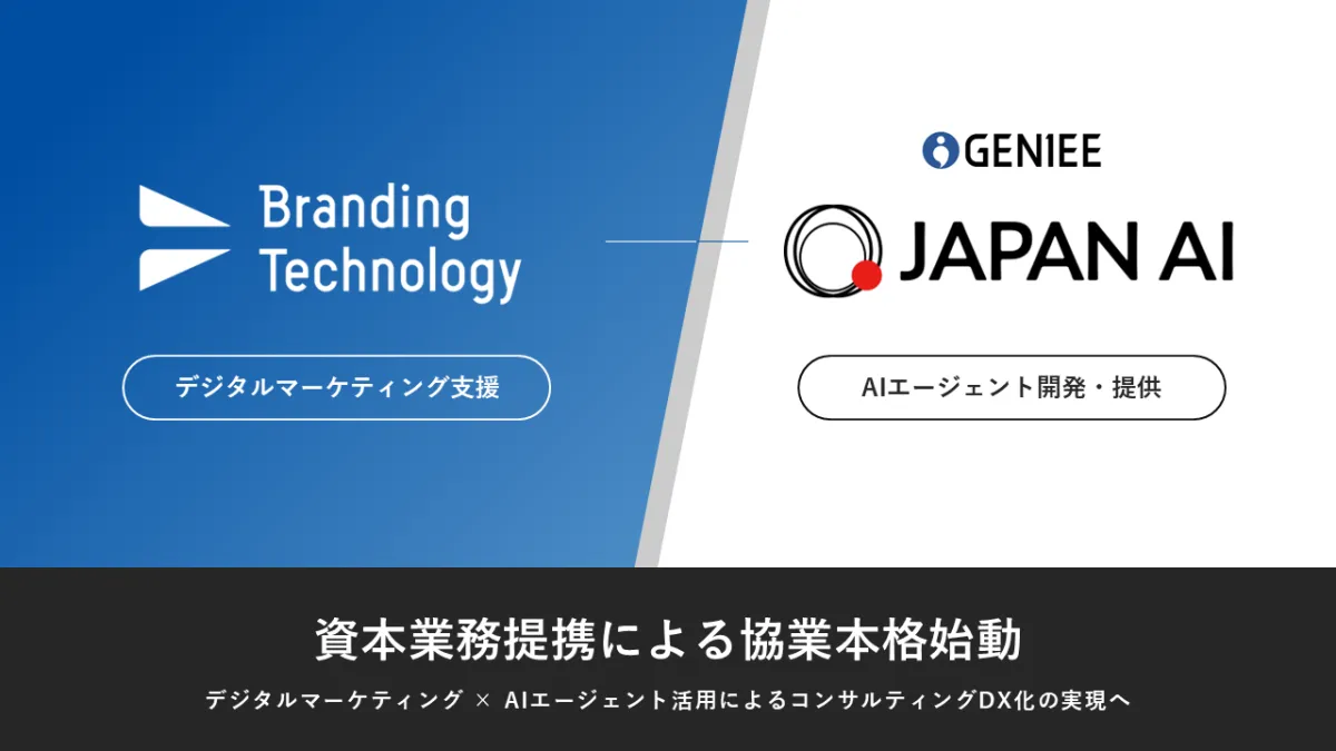 ブランディングテクノロジー株式会社(以下、ブランディング社)は、株式会社ジーニーのグループ会社であるJAPAN AI株式会社(以下、JAPAN AI)との資本業務提携契約を結びました。この提携により、AIエージェントを活用した新たなコンサルティング業務が展開されることとなります。