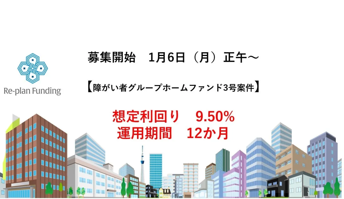 株式会社リプランが運営する不動産投資型クラウドファンディング『Re-plan Funding』では、2025年1月6日から新ファンド「インカム型第3号グループホームファンド」の一般募集を開始します。これは、社会的なニーズにも応える投資機会として、特に注目を集めています。