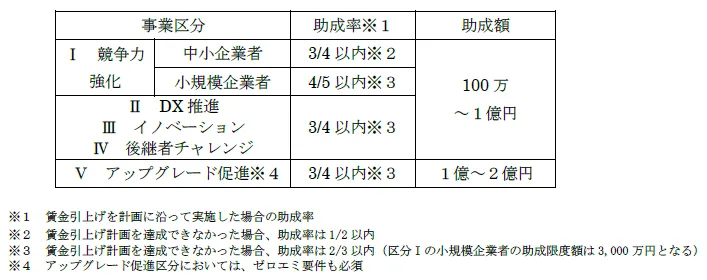具体的な助成率や助成限度額は、助成対象事業や経費によって異なりますので、詳細については公式ホームページで確認が必要です。助成金は、交付決定日の翌月から最大で1年6ヶ月間使用することができます。対象経費には、機械装置、器具、備品、ソフトウェアの導入費用が含まれます。