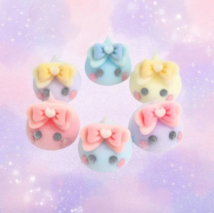 今回の新作、ふわふわリボンデカほっぺちゃんは、触れると思わず笑みがこぼれるような新感覚のフィギュアです。独自のフロッキー加工によって、まるでぬいぐるみのような柔らかさと、マシュマロのようなぷにぷに触感を実現。見た目も愛らしく、部屋に飾るだけで癒しの空間を作り出してくれます。サイズは横約2.5cmで、手のひらに収まる可愛さです。