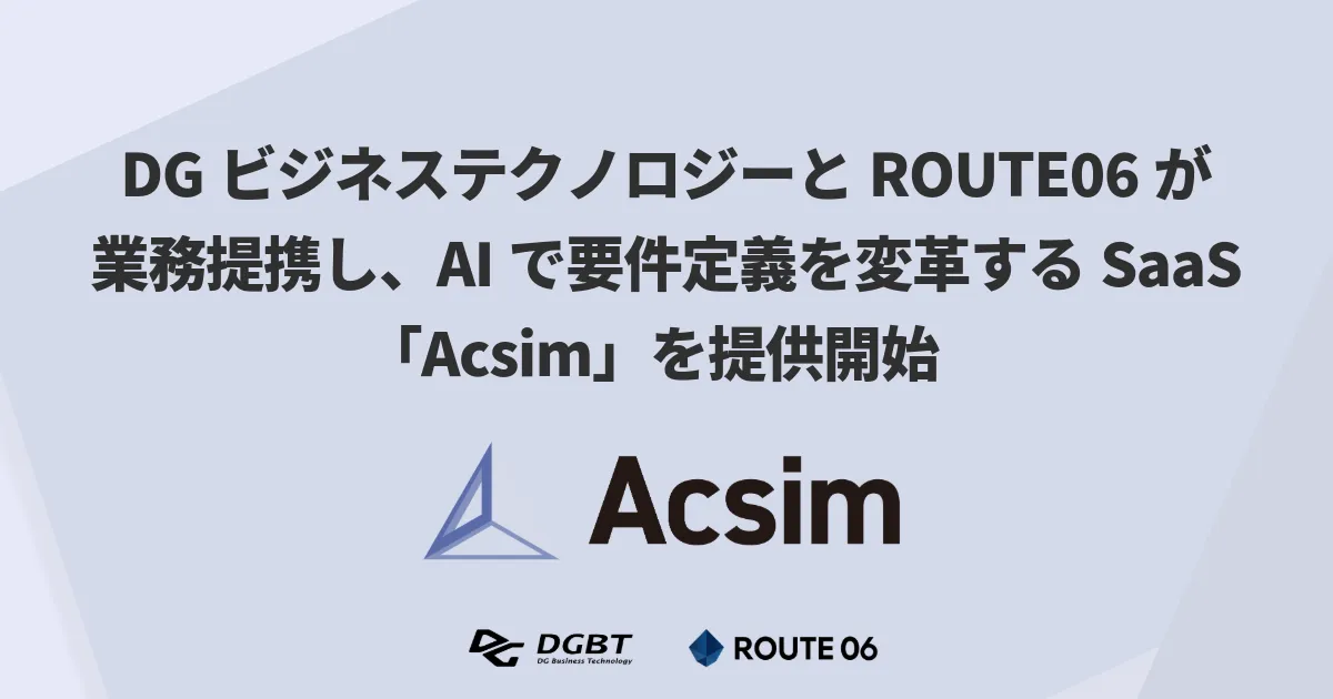 DGビジネステクノロジーとROUTE06、AI活用の新サービス『Acsim』を発表