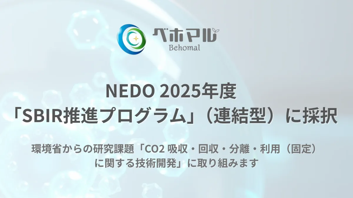 具体的には、ベホマルは国立研究開発法人新エネルギー・産業技術総合開発機構(NEDO)が公募する2025年度「SBIR推進プログラム(連結型)」に採択され、全37件の応募から選ばれました。このプログラムは、さまざまな社会課題を解決することを目的とした研究開発型のスタートアップを支援するものです。