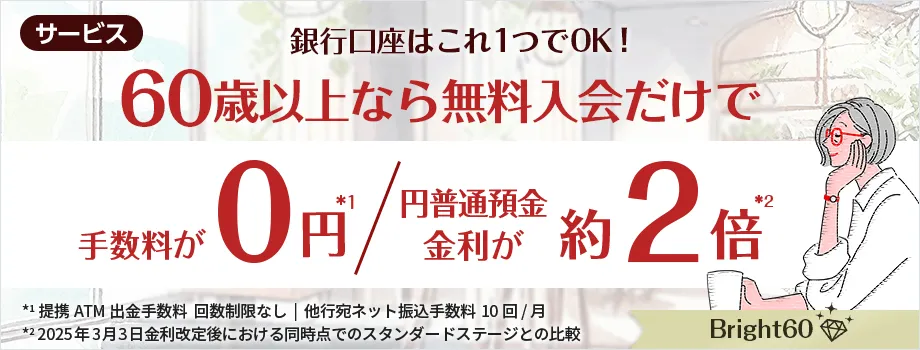 2025年4月1日、SBI新生銀行は新たなサービス「Bright 60」を導入します。このサービスは、60歳以上の個人を対象としており、これを機にダイヤモンドステージという最上位の会員ステージに自動的に昇格することができます。