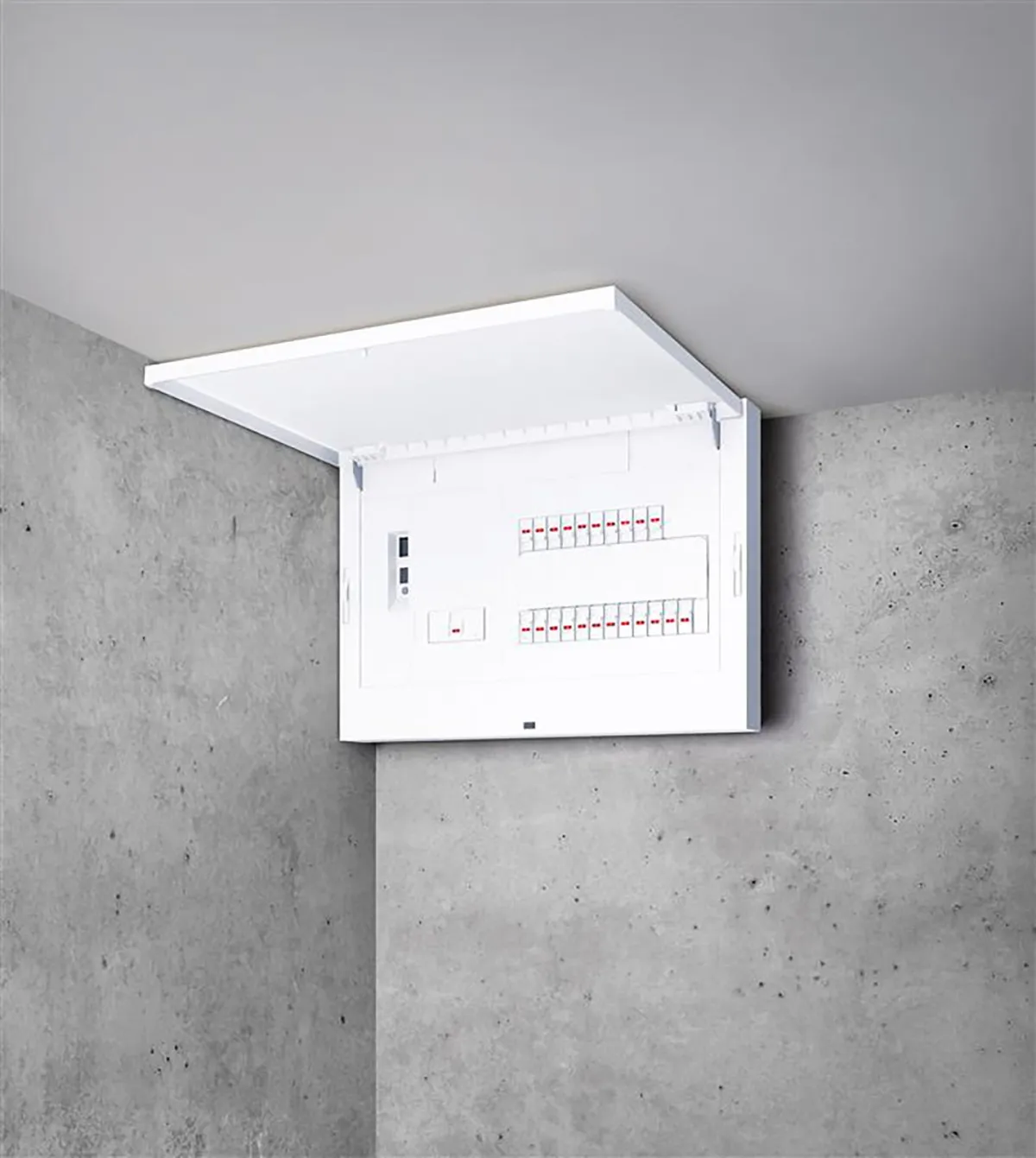 この製品は「スマートコスモ」と同様に、計測アダプタを標準で搭載し、CT(変流器)なしで最大43回路の電流を計測可能です。施工の際には、カバーを外した状態でも負荷名称を容易に確認できるため、作業の効率が向上します。また、電圧設定の際に発生するミスを防ぐために、分岐ブレーカの取り付け部のデザインを見直しており、200Vの通電確認も容易です。