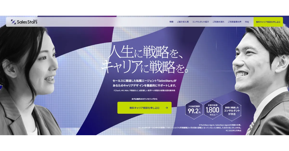実際に「SalesStars Agent」を利用して成功した事例を紹介し、転職を希望する方のモチベーションを後押しします。