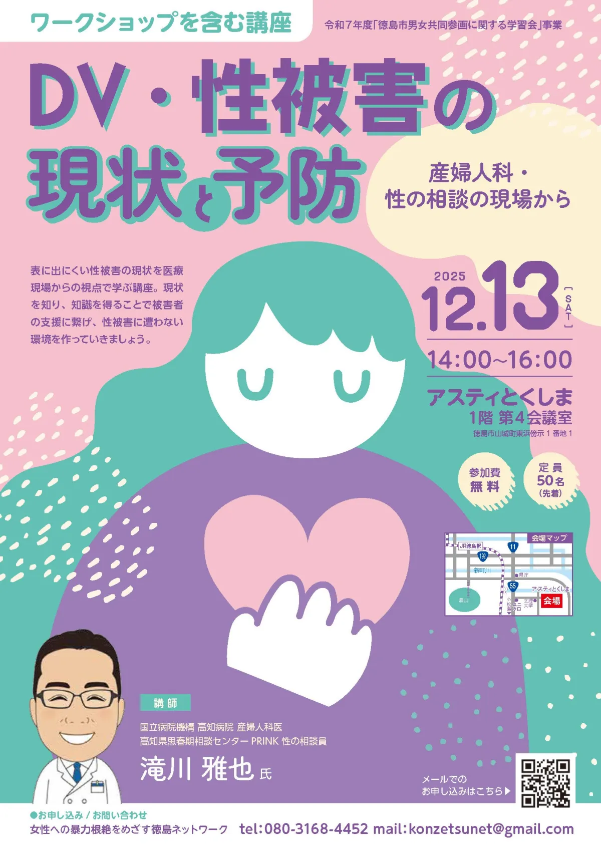 2023年12月13日(土)、徳島市で「DV・性被害の現状と予防」に関する学習会が行われます。この講座は、性被害の実態について、一見表に出にくい問題を医療の視点から学ぶ貴重な機会です。現代社会における性被害は深刻な問題であり、周囲の理解と支援が求められています。この学習会を通じて得た知識は、被害者へのより適切な支援に繋がるだけでなく、性被害の発生を未然に防ぐための環境作りにも寄与します。