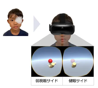 InnoJin株式会社では、遊び感覚で弱視の治療を行えるVR訓練プログラムを開発しています。このプログラムでは、子どもたちがVRゴーグルを装着し、けん玉や卓球などのゲームを通じて自然に弱視の目を使用するように設計されています。楽しみながら視力を改善することができ、アイパッチの使用による心理的な負担を軽減することが期待されています。
