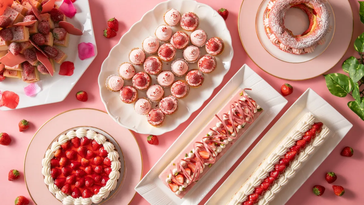 ブッフェでは、20種類以上のスイーツが用意されます。輝く苺がトッピングされた「苺のタルト」や、サクサクのタルト生地にしっとりとした苺のクリームを詰めた「苺のパリブレスト」など、目にも楽しいメニューが揃います。さらに、パティシエが目の前で仕上げてくれる「苺のモンブラン風ミニパフェ」や、楽しみの一つである「苺のフレンチトースト」は、出来立てを楽しめる特別な体験となるでしょう。