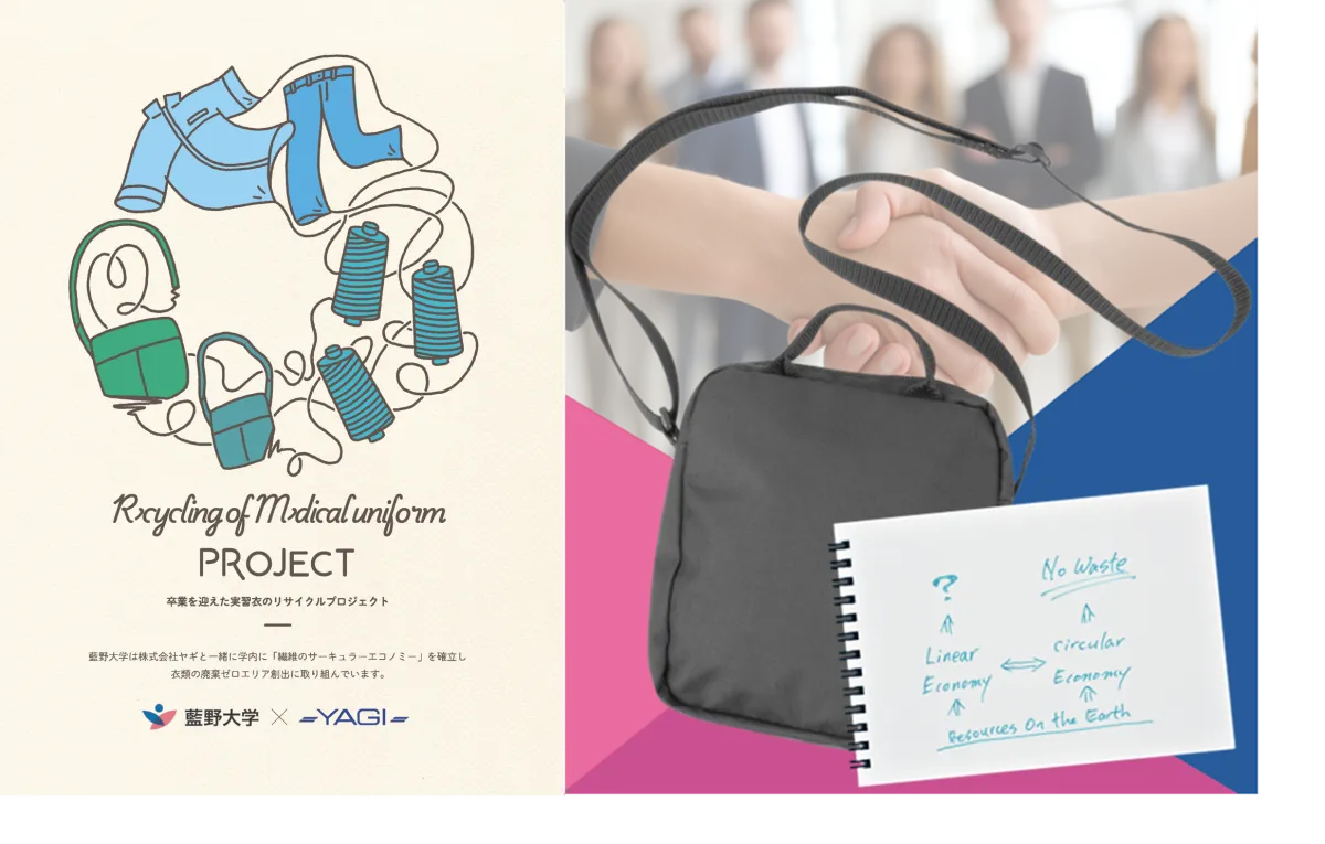 この状況を受けて、ヤギ株式会社は、自社が持つ衣料品の回収と再繊維化のノウハウを活用し、不要になった実習衣をリサイクルするプロジェクトを開始することになりました。新たに生まれ変わる衣料品は後輩の学生たちが実習で使う医療ポーチとして活用される予定です。