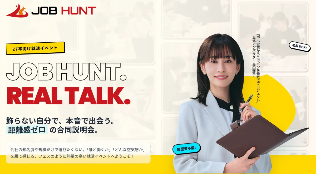 株式会社HRteam(東京都渋谷区)が運営する対話型就活マッチングイベント「JOB HUNT」が、サイトをリニューアルしました。このリニューアルは、就活生が抱える「本当の企業の姿が知りたい」「自分の魅力を理解してほしい」といった声に応え、就活のあり方を根本から見直す試みです。