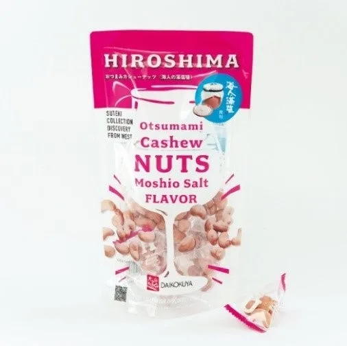 この新フレーバーは、第一弾で好評だった「おつまみカシューナッツ」に新たな味を加えたものです。香ばしいカシューナッツに、呉市の蒲刈島で伝統的な技法で作られた「海人の藻塩」を使って味付けされており、まろやかなコクが特徴です。お酒のおつまみやお子様のおやつにも最適です。