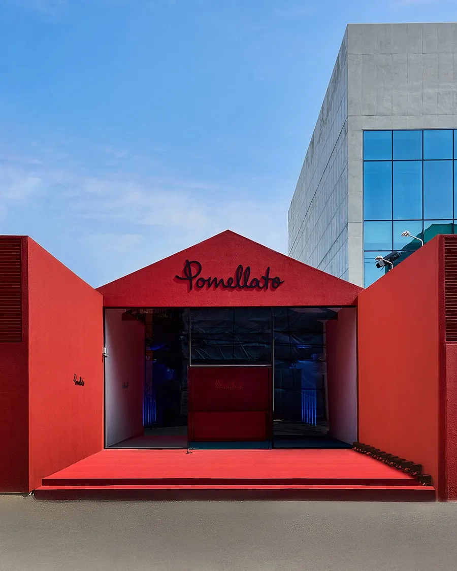 イベントは、ポメラートの象徴的な赤色のエントランスから始まります。その先には、美しいミラネーゼデザインで装飾された空間が広がり、オーガニックな建築要素と豊かな色彩が創造的な雰囲気を醸し出しています。