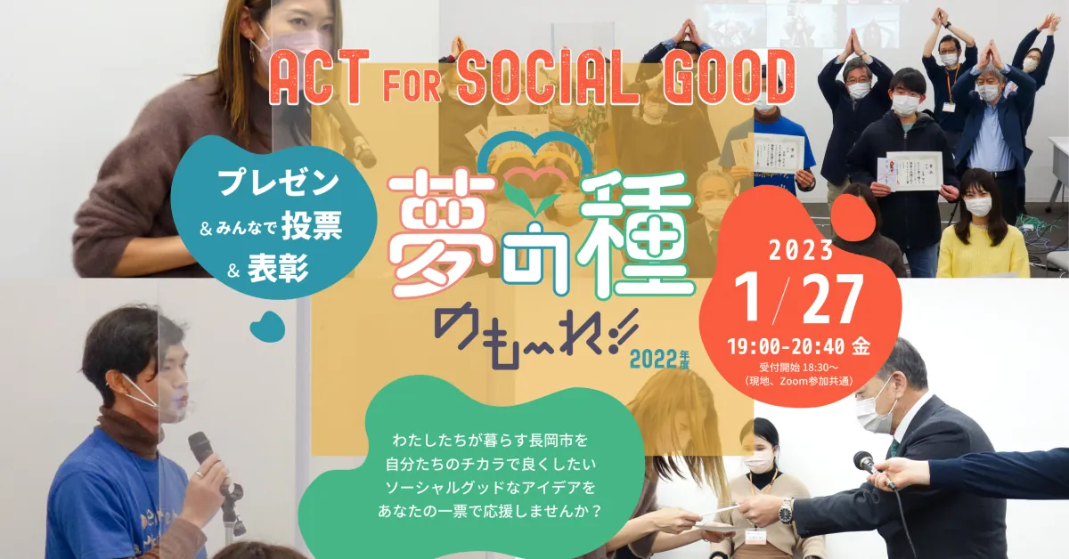 2023年1月27日、長岡市のアオーレ長岡にて、市民参加型のアイデアコンテスト『夢の種のもーれ!2022年度』の最終プレゼン大会が開催されました。