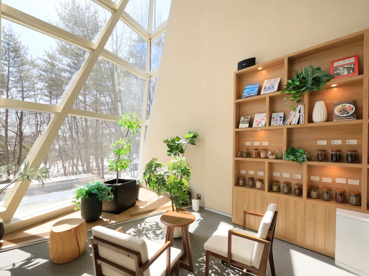 「フォートリート草津」は、訪れる人々が自然と密接に繋がり、心の休息を得るための場所を目指しています。館内にはライブラリーやラウンジがあり、ゆったりとした時間を過ごすことができます。また、客室数は14室で、温泉半露天風呂付きの客室から、スタイリッシュなメゾネットタイプまで多種多様なタイプが揃っています。