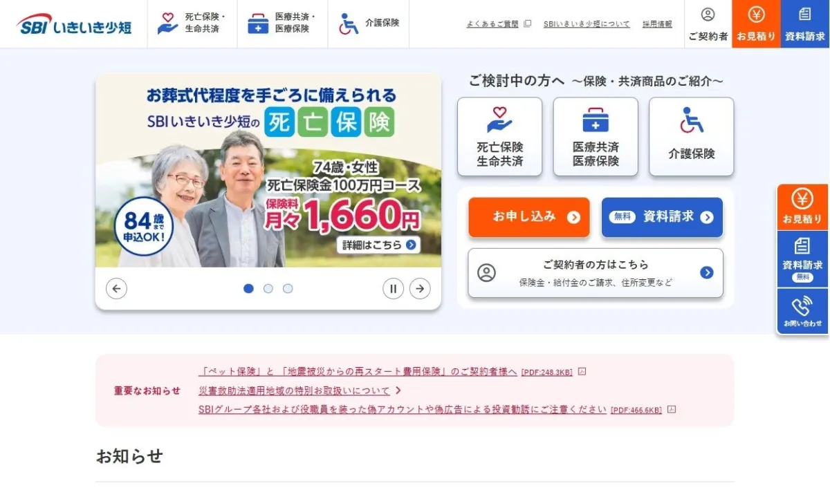 SBIいきいき少額短期保険株式会社ウェブサイトのリニューアルについて
