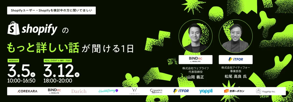 2025年3月5日(水)、日本のEC市場をリードする株式会社ウェブライフが、業界の最新トレンドや成功事例を通じてECビジネスの成長戦略を深堀りするカンファレンス「Shopifyのもっと詳しい話が聞ける1日」を開催します。このイベントは、Shopifyのパートナー企業が集結し、オンラインとオフラインの二部構成で行われます。