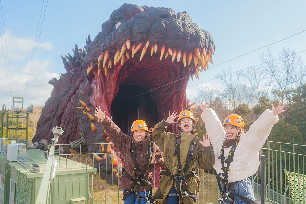 ゴジラを目の前に大興奮!春のペアジップライン体験