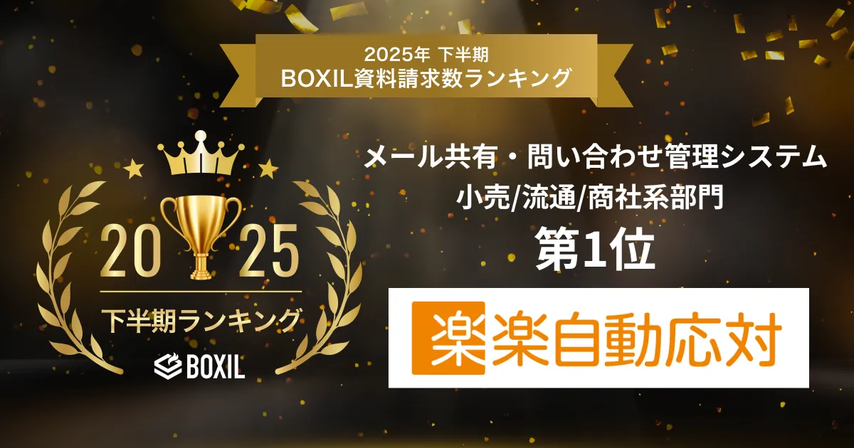 株式会社ラクスの提供する「楽楽自動応対」が、2025年下半期のBOXIL資料請求ランキングで、メール共有・問い合わせ管理システムの小売/流通/商社系部門において1位に選出されました。この評価は、ユーザーの資料請求数に基づいたものであり、高い評価を得ている理由が鮮明です。