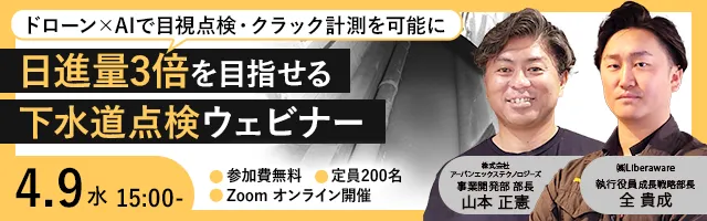 2025年4月9日に、株式会社アーバンエックステクノロジーズと株式会社Liberawareが共同で開催するウェビナー「ドローン×AIで目視点検・クラック計測を可能に」が注目を集めています。本ウェビナーは、インフラ点検の新しい手法を紹介するもので、特に下水道点検に革新をもたらす内容となっています。