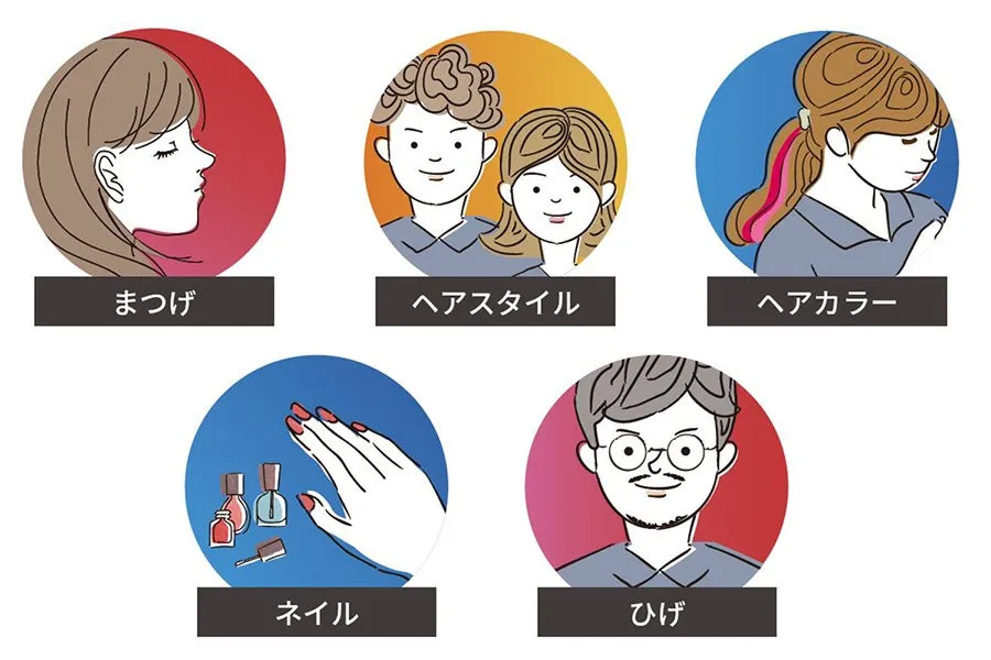 - - ヘアスタイルやヘアカラー:個人の好みに応じて自由な選択が可能。