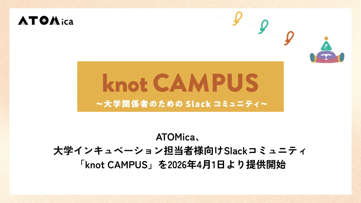 株式会社ATOMicaは、全国の大学関係者を対象にしたSlackコミュニティ「knot CAMPUS」を2026年4月1日より提供することを発表しました。この新しいプラットフォームは、特にインキュベーション担当者に焦点を当て、大学間での情報共有と関係性の構築を目的としています。