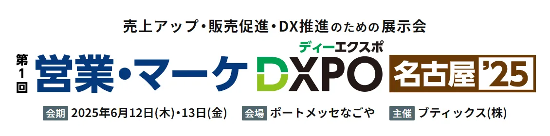 「第1回営業・マーケDXPO名古屋'25」は、ブティックス株式会社が主催する展示会で、売上アップや販売促進のための様々なソリューションが集結します。開催日は2025年6月12日(木)と13日(金)の二日間で、ポートメッセなごやの第1展示館で行われます。各日ともに9:30から17:00まで開場され、参加は事前登録制で無料です。