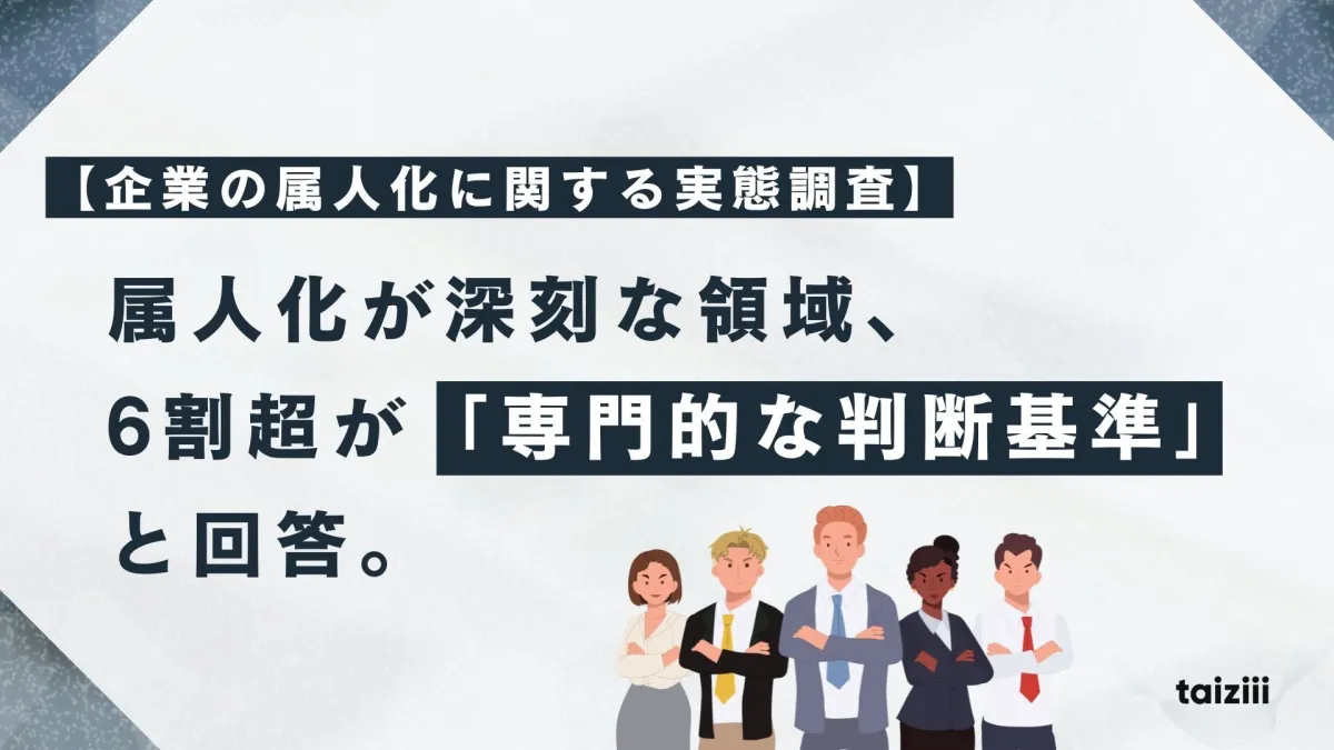 株式会社taiziiiは、業務改善のコンサルティングやシステム開発を行っていますが、このたび一般企業の管理職200名を対象に、企業の属人化に関する実態調査を行いました。