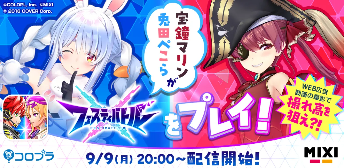 女性VTuberグループ「ホロライブ」に所属する人気の二人、兎田ぺこらさんと宝鐘マリンさんが、新作スマートフォンゲーム『フェスティバトル』のプレイを2024年9月9日(月)20:00から生配信することが決定しました。この配信は、彼女たちのファンやゲームファンにとって見逃せないイベントとなるでしょう。