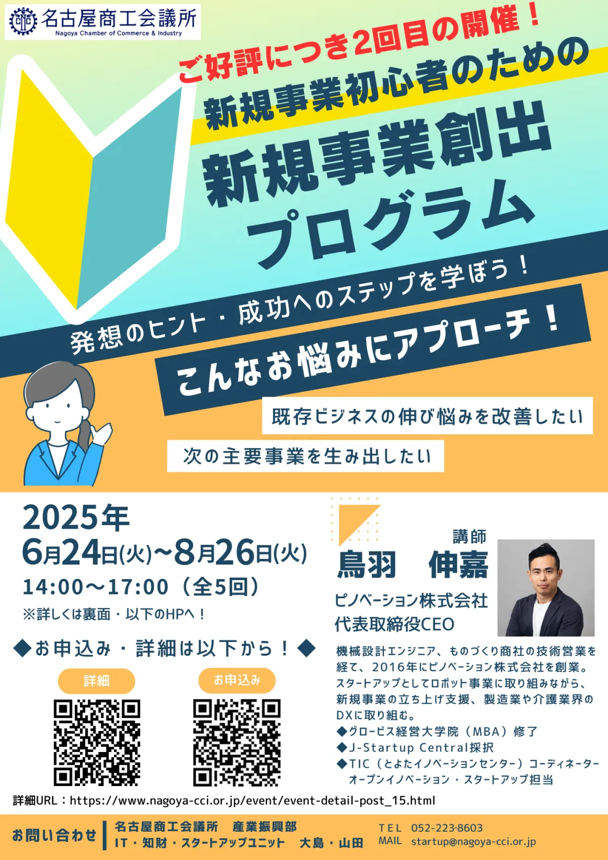 名古屋商工会議所が提供する「新規事業創出プログラム」が、好評につき第2回目の開催が決定しました。前回の参加者からは「他の人にも勧めたい」と高い評価を得たこのプログラムは、新規ビジネスに挑戦したい方にとって最適な機会です。今回のプログラムは、愛知県内に本社を置く優れたスタートアップ企業、ピノベーション株式会社との連携により、実践的なワークショップ形式で実施されます。