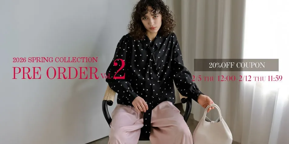 「2026 SPRING PRE ORDER vol.2」は、2026年2月5日12時から2月12日11時59分までの期間限定で行われます。この期間中は、特設ページにて先行特典クーポンが利用できるため、気になる新作アイテムをお得に手に入れることができます。新しい季節に向けて、自分をアップデートするチャンスです。特設ページには、最新アイテムのラインナップが掲載されており、スタイリッシュなコーディネートの参考にもなります。