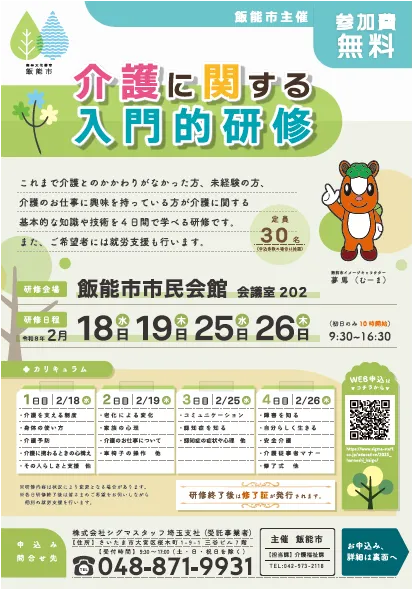 詳細な情報や申し込み方法については、飯能市の公式ホームページをご覧ください。介護についての不安を解消し、安心して学ぶことができるこの機会に、ぜひ積極的に参加してください。