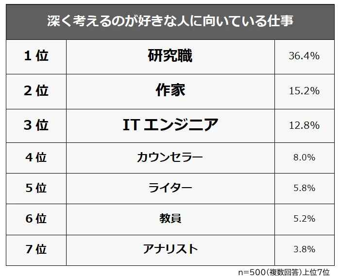 深く考えるのが好きな人向け職業ランキング