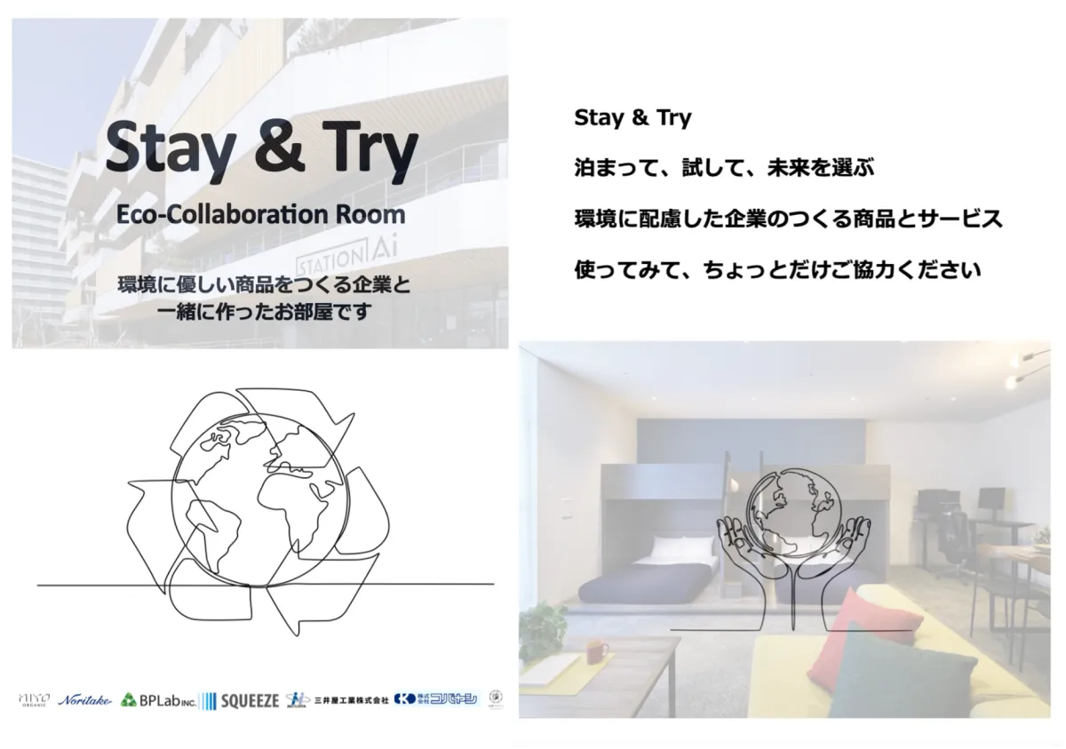 このプロジェクトは、名古屋にあるアパートメントホテル「Minn STATION Ai Nagoya」で展開され、2026年5月1日から30日までの初期実証フェーズとして運用開始が予定されています。宿泊することで、環境に配慮した商品やサービスを体験できるホテル空間が広がります。