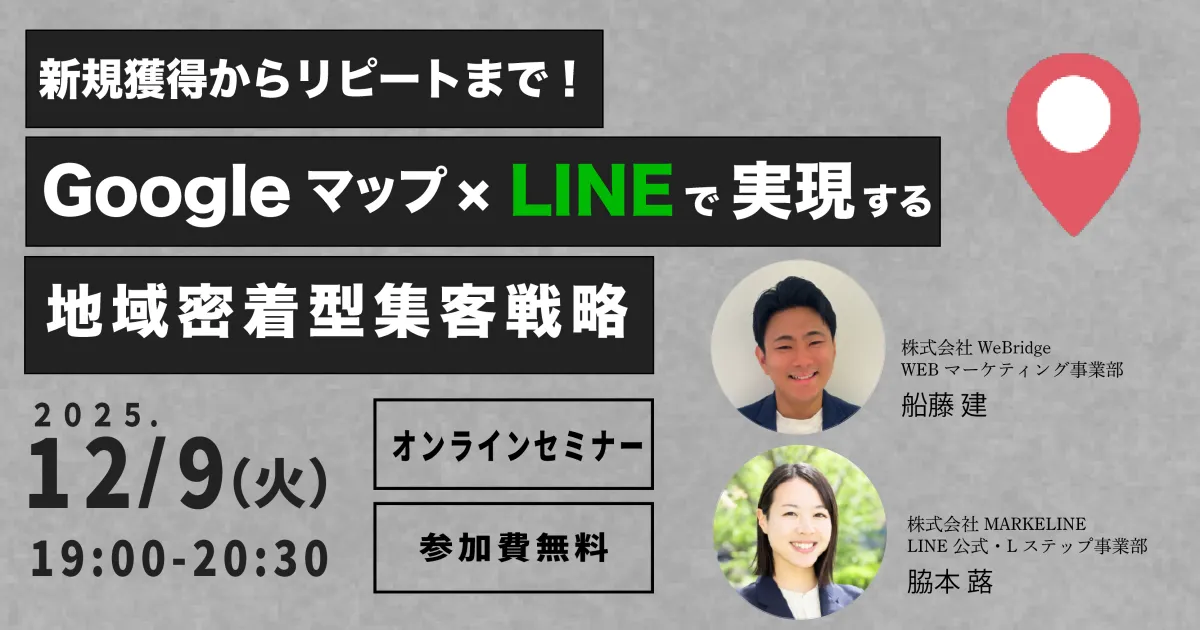 2025年12月9日(火)に開催されるオンラインセミナー「Googleマップ×LINEで実現する地域密着型集客戦略」についてお知らせします。このセミナーでは、スマートフォン利用者が98%に達している現代において、特に重要なSNSであるLINEや検索エンジンの Googleを最大限に活用した集患・求人・ブランディングの対策方法について詳細をお伝えします。
