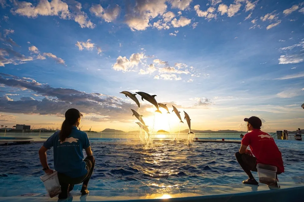 特に注目したいのは、夕暮れ時に開催される「イルカサンセットプログラム」です。このプログラムは、夕日が沈む瞬間にイルカたちが泳ぐ様子を幻想的な景色としてお届けします。18時30分から約15分間、イルカ棟の2階にある海豚プールやサンセットデッキからその美しい景色を観賞できます。日によって異なる空の様子とイルカたちの動きが一体となり、まるで一つのアートを観ているかのような気分になります。