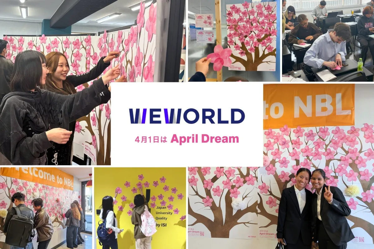 日本最大のISI日本語学校を運営するWEWORLDグループが、教育機関を通じて「April Dream 2026」プロジェクトに参加しました。この活動は、単なる嘘をつく日ではなく、本気で叶えたい夢を発信する文化創造プロジェクトとして位置付けられています。参加者は新入生オリエンテーションにおいて、各々の夢をカードに書き、キャンパス内に掲示しました。